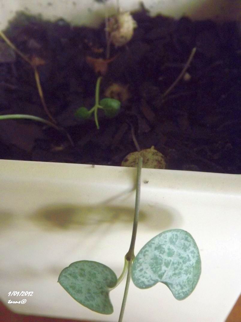 Brand new baby shoot growing from the middle of my Chain of Hearts plant