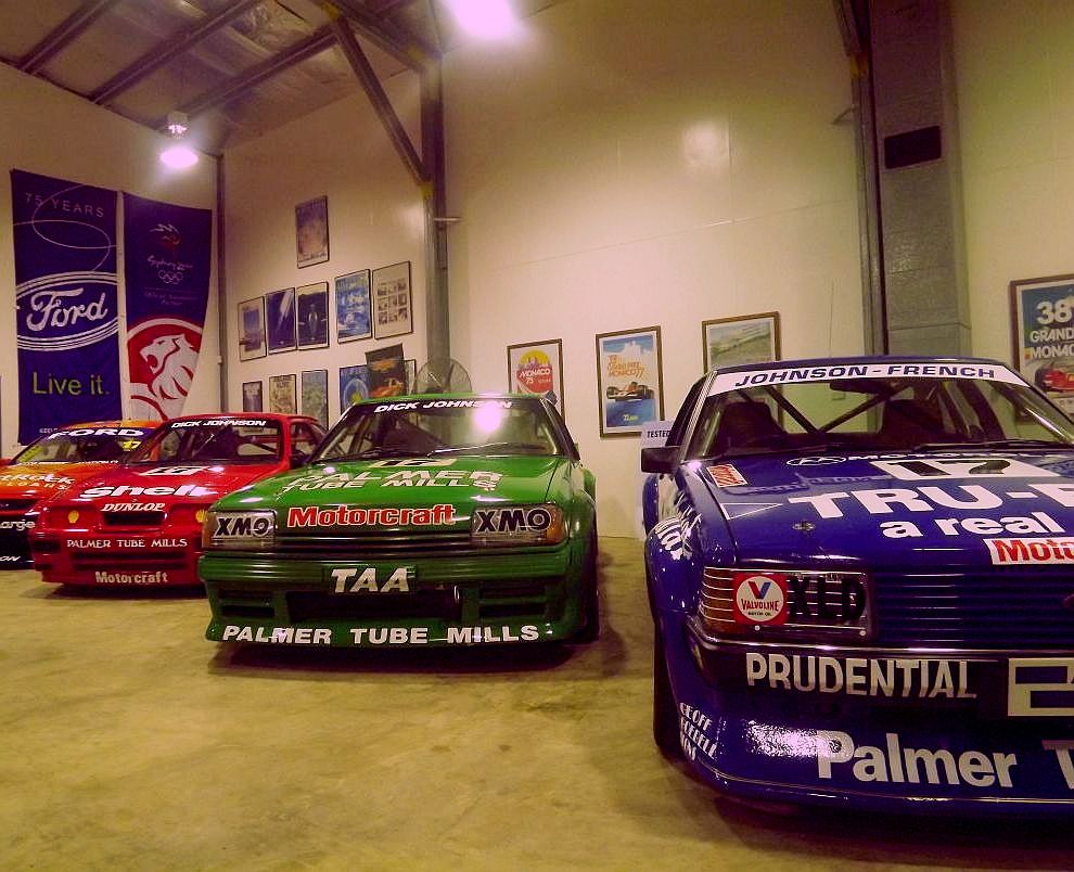 Just a few of the amazing collection of cars, at ‘the Bowdens’…lineup of Dick Johnsons racing beasts…