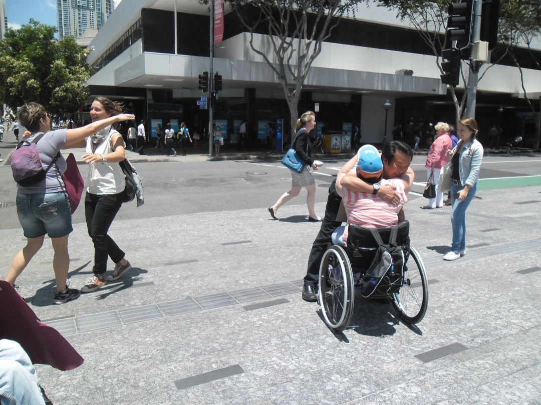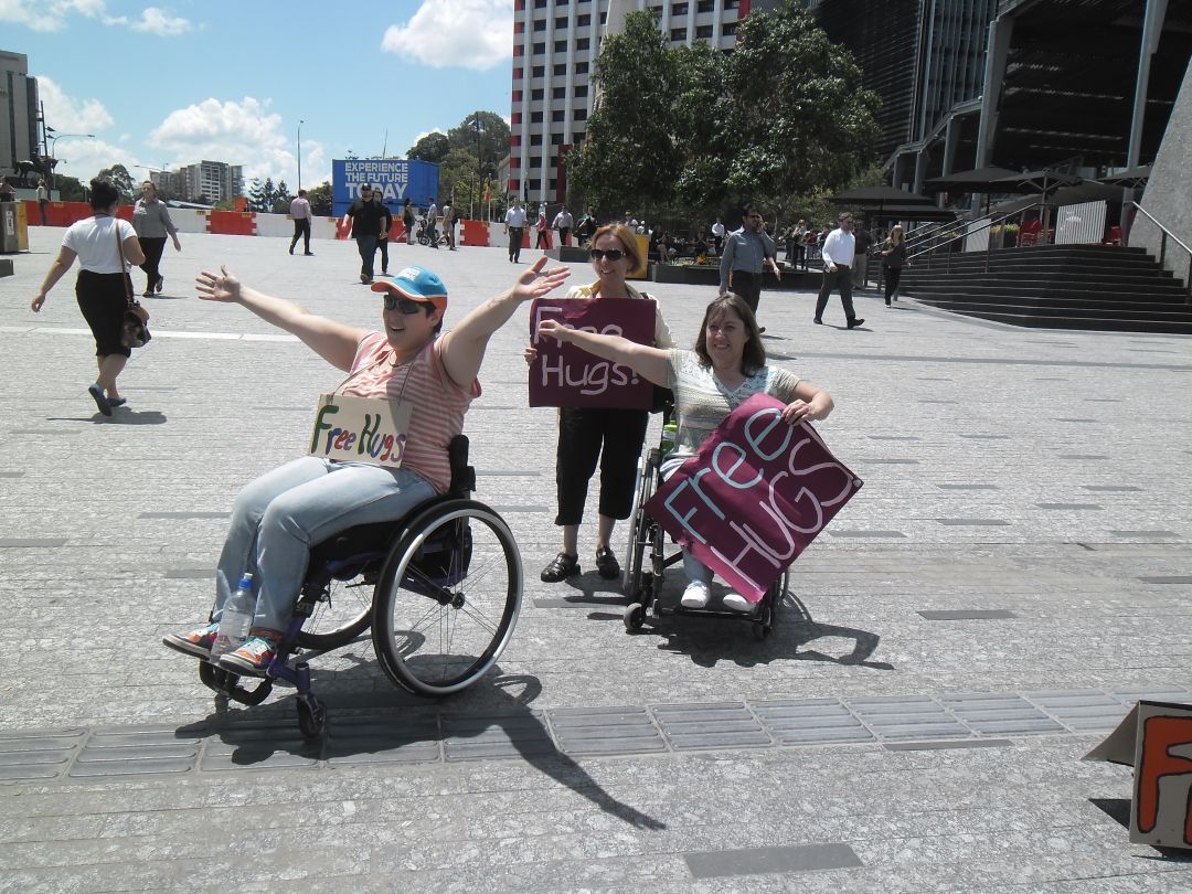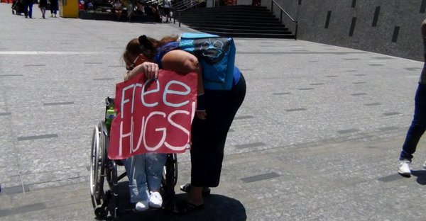 “on the 18th of November I ticked the very first thing off my list officially, go to Brisbane city and give out free hugs, when i put this on my list the whole purpose of this was to give people something to smile about for the day and make them feel good, when i first put this on my list i thought i really want to do this but was not sure how it would go, but i went ahead and did it anyway with the doubts i had cause i was so passionate about it and to my surprise it was the best day!! the response and comments we go from people was just amazing!! i went there to make others feel good but instead it made me feel awesome! im always trying to find ways to help people and i went away from this event smiling for days and feeling i really made a difference to people today and that felt so good to help people like that.