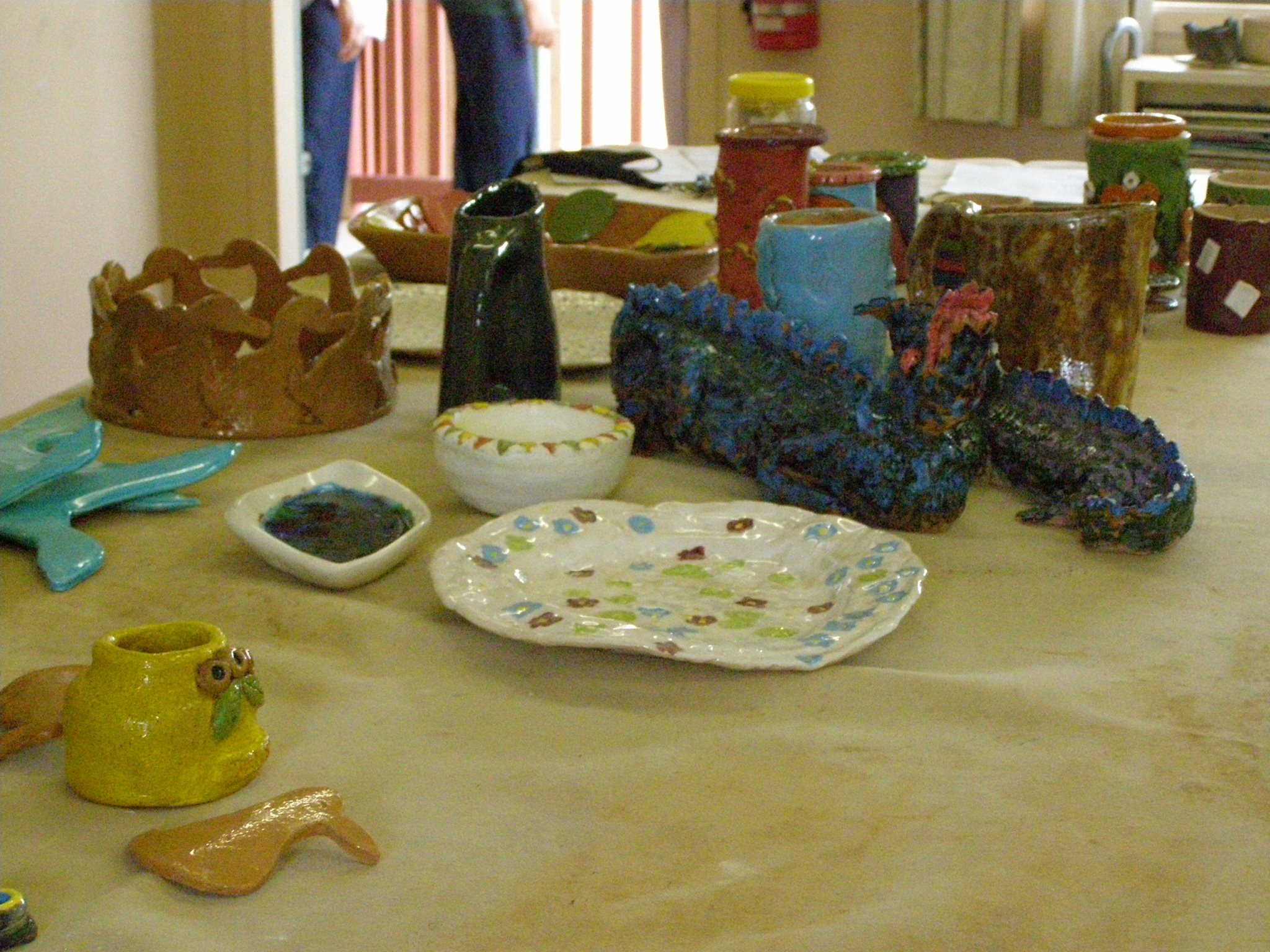 Some of the groups finished products – including my little blue vase in the middle….awww….so proud of my little vase! haha 🙂