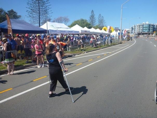 My apologies for not sharing my blog on this amazing experience before now, but I was absolutely SHATTERED after the Event…then life suddenly kicked up another notch again, after my recovery!!.No rest for the wicked…haha. I was literally not capable of doing an absolute thing for a whole week (including barely being able to get out of bed for a few days..oooohhhh the pain and brain fog!!) BUT, it has been so, SO worth it, with the pride and amazing sense of achievement I have felt since ticking off… “#145. Get a team together and do a fun run/part-marathon type event, (walking on crutches – part walk/part chair), to raise money for charity” ..off my bucketlist on Sunday 31st August, 2014!! I absolutely SMASHED IT…Before the Event, I was really worried about completing it in the hour – I ended up bringing it home in just over 38 minutes!! Yeeewww!!