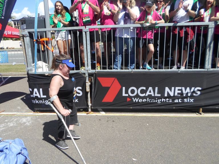 One aspect I am so proud of, is that about 300m in, even though I got completely spooked in my mind, and just wanted to run out of there and go home – I was less than 500m into the distance, and got absolutely frightened about “HOW am I going to do this, this distance is ridiculous!!” – BUT…with the help of my amazing ‘Dream Team” who encouraged and pushed me through it with their incredible support, with the support of the spectators on the sidelines cheering me on, and with the support of my wheelchair – I pushed my mind and body through that REALLY tough moment and continued on (I started with walking as far as I could…then pushed in my wheelchair for a bit…back up walking…chaired it…etc) – until, the magic moment when I turned and walked down the ‘home straight’ and over that Finish line! What an absolutely special moment! As it turned out, my original ‘game plan’ went completely out the window haha…but it worked in my favour, as I walked far more than I ever thought I would – in the end I would have walked more than half, inbetween chair-ing to gather up more strength! Hence why I was SO SORE (aka. completely wasted! haha) in the days afterwards!