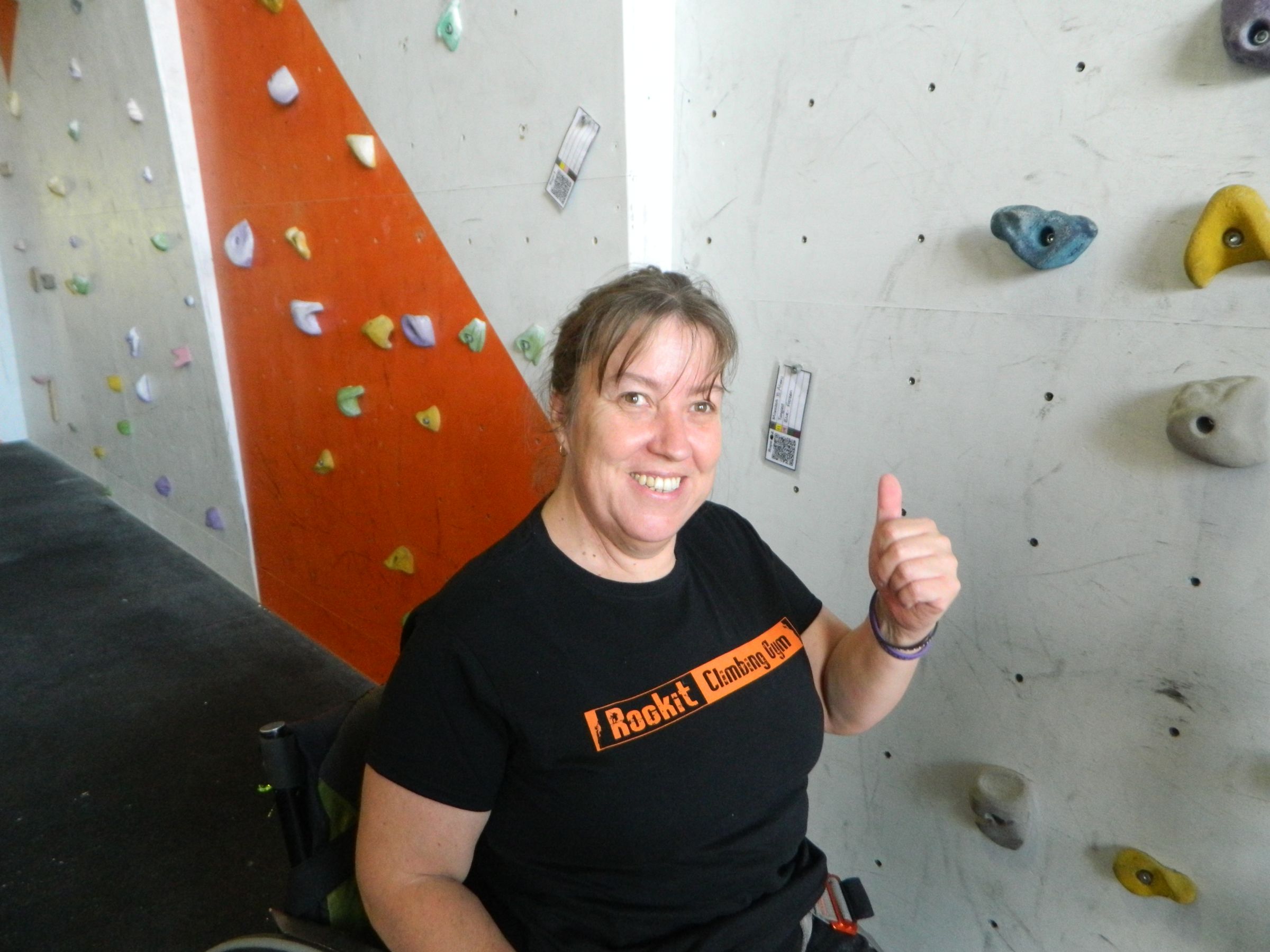 Royce (RockIt Climbing Gym owner), Hannah (who came up with me as my little security blanket haha – Hannah was amazing with me up there, staying by my side the entire way…but at the same time letting me ‘do all the work’ myself), Glenn (my ‘belay’ – holding onto the rope strapped to my harness), and Megan – YOU are all amazing! From that first day I went into RockIt in my wheelchair and approached Royce about Climbing the Wall….to on the day, the crew rallying around and doing what needed to be done, to make it happen – what a humbling, and incredible (and also adrenaline-filled) experience! A huge THANK YOU, to everyone at Rockit Climbing Gym for doing whatever had to be done to Make today Happen…you are all amazing people! Now THAT is a perfect way to celebrate my birthday!! 🙂 Reaching the age of 45yrs old, with my spina bifida and hydrocephalus (there have been a number of times in my life which I didn’t know whether I was going to ‘still be here at 45’) was a magic milestone age which was really important to me to reach – and to celebrate it in such an amazing way “Well Life, Im still here – and I’m ROCKING it!” haha…such a special feeling to show Life itself, what Im (still) made of despite the uncertainty of my health and life itself, when living with these disabilities!