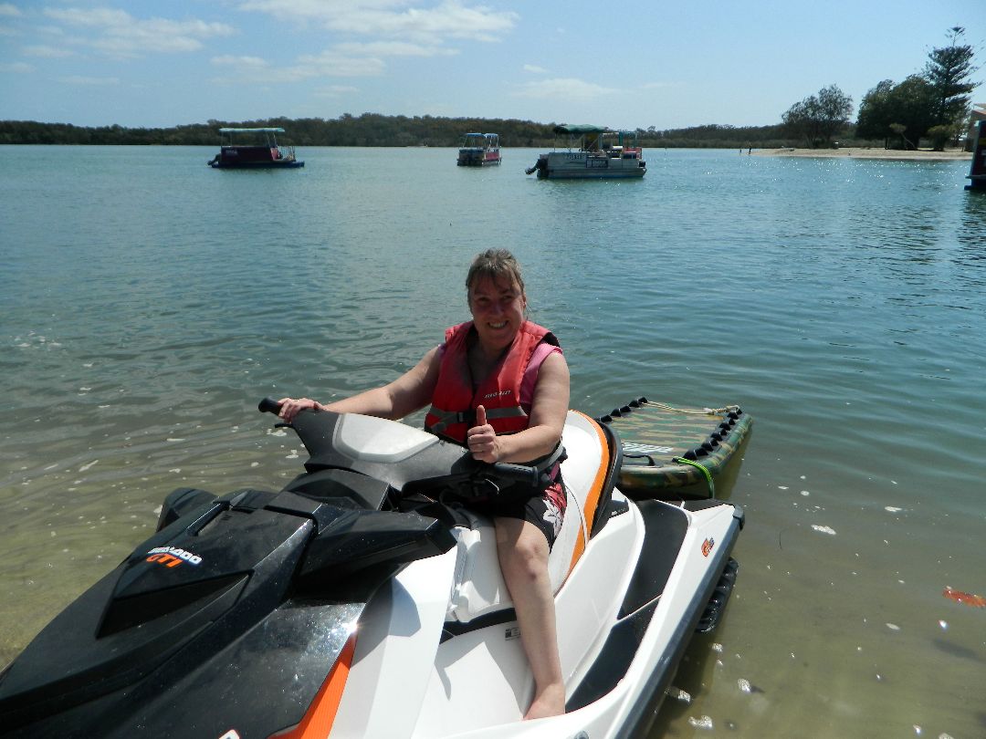 “#3. Ride a Jetski – DONE! Wow…wow…what an EPIC experience that was! Not only did I get to ride on the jetski, but I got to drive it myself, with the awesome Jonah from Maroochy River Jet Ski Hire on the back, supporting around me for my balance. I zoomed around out on that water, having the absolute time of my life (getting faster once I got used to the whole ‘balance’ sensation etc)…riding over the little waves which other ski’s created, doing loops and figure-8s in the freestyle area – taking it right up to ‘hire set speed’ up the strait…and wanting to push it faster! haha. I could not believe that I was actually driving the machine, MYSELF! How empowering! Instead of being taken for a ride as a passenger..I was actually driving it, myself….wow! 😀